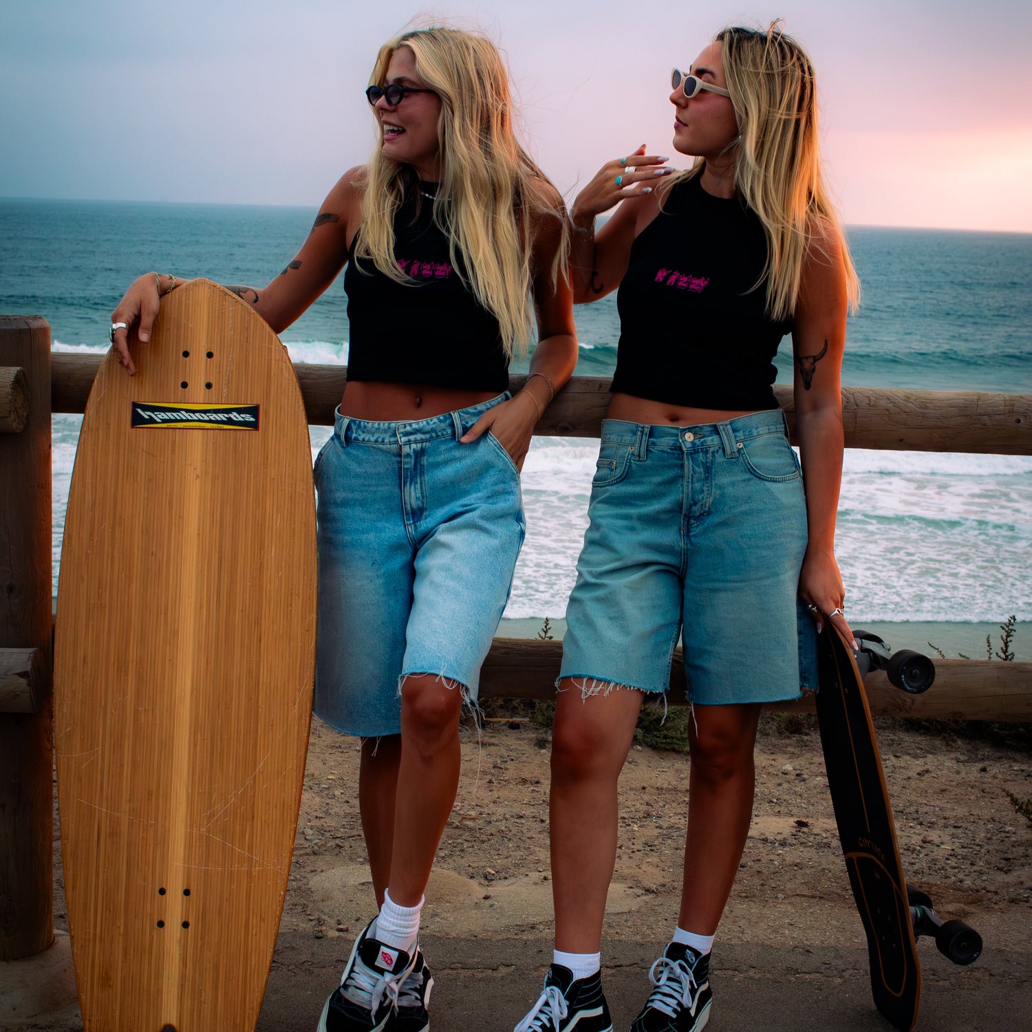 Introducing our first-ever women’s release: the Kazzy girls tank. Inspired by early 2000s surf culture and built with today’s streetwear edge, this cropped tank is made to move—whether you’re skating, cruising, or catching sunsets. A limited first drop that sets the tone for Kazzy women’s